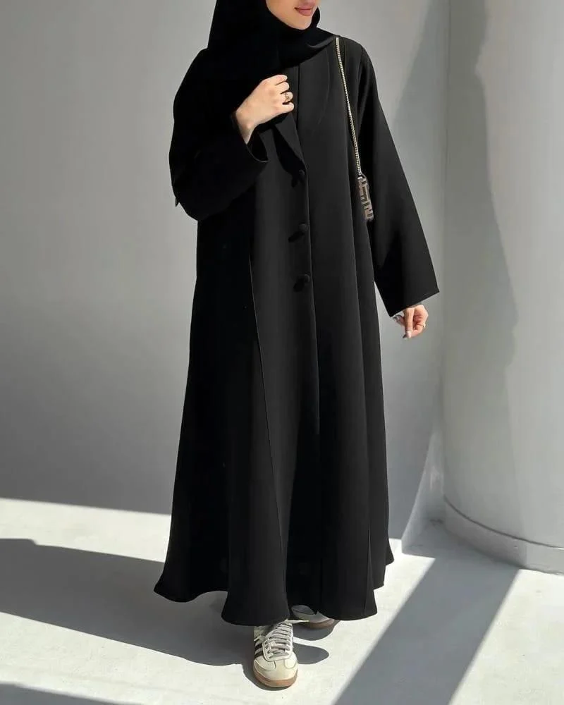 • قصة ربع كلوش مريحة تمنحك وسعًا مدروسًا في الأسفل لإطلالة متزنة ومناسبة للحركة اليومية.