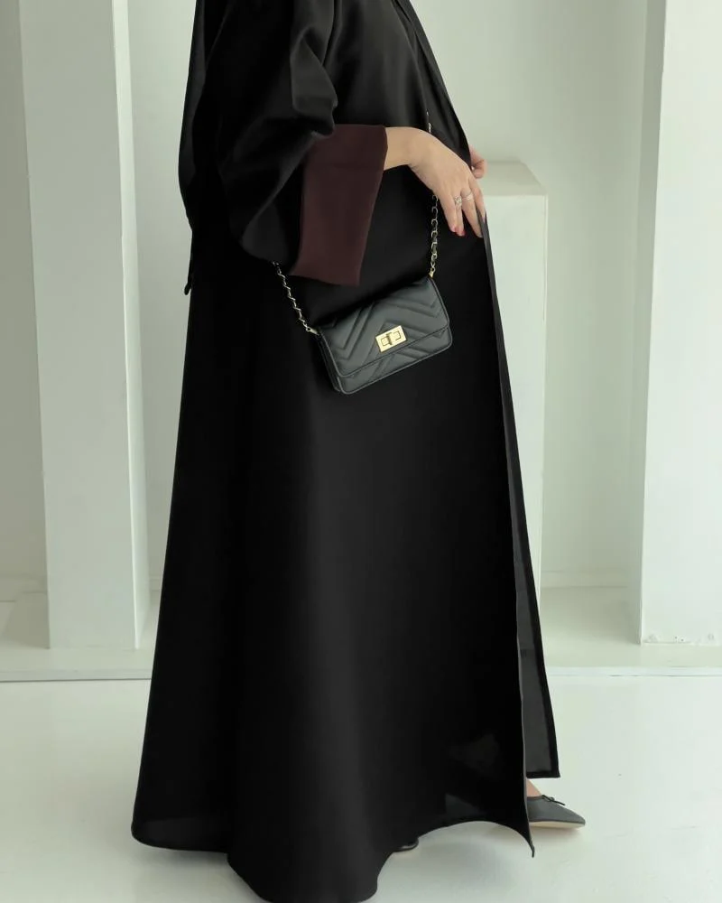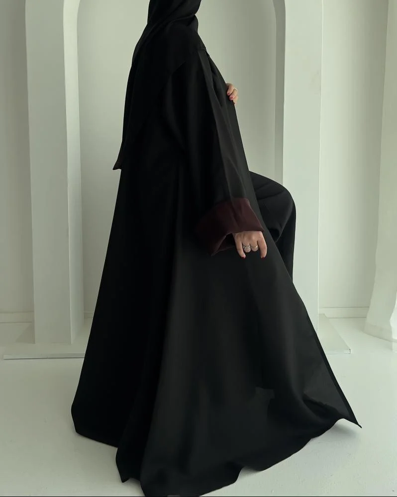 عباية خفيفة تمنحك الراحة والأناقة في كل خطوة من روز للعبايات ، بتصميم عصري يواكب أسلوب المرأة العملية ، مصنوعة من قماش كريب أسود ناعم بملمس انسيابي يخفّ على الجسم ويمنحك حرية في الحركة ، وتأتي بقصة واسعة مثالية للإطلالات اليومية بمختلف أنواعها ، سواء كنتِ متجهة للعمل أو للخروج مع الأصدقاء ، أما لمسة العنابي على الأكمام المقلوبة للخارج ، فهي تضيف لمسة أنيقة وراقية بدون تكلف ، تجعل هذه العباية خيارك اليومي بكل ثقة.